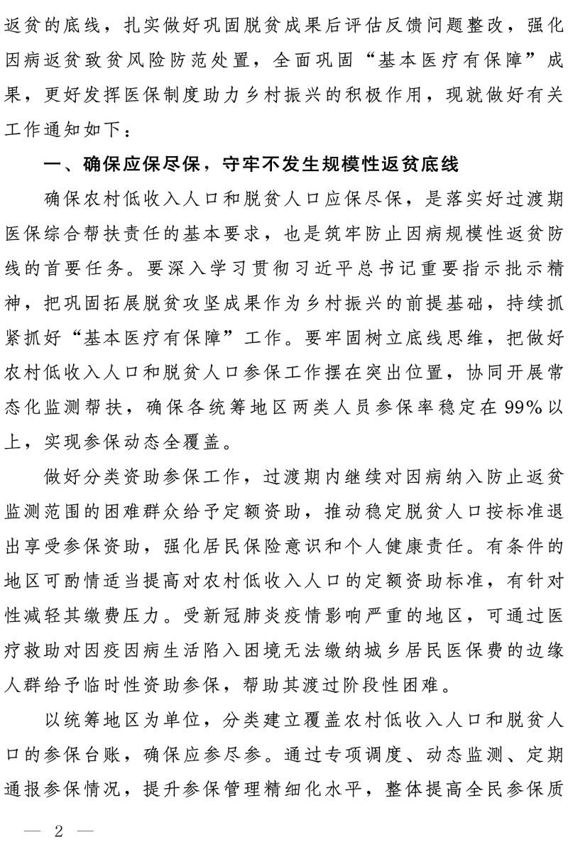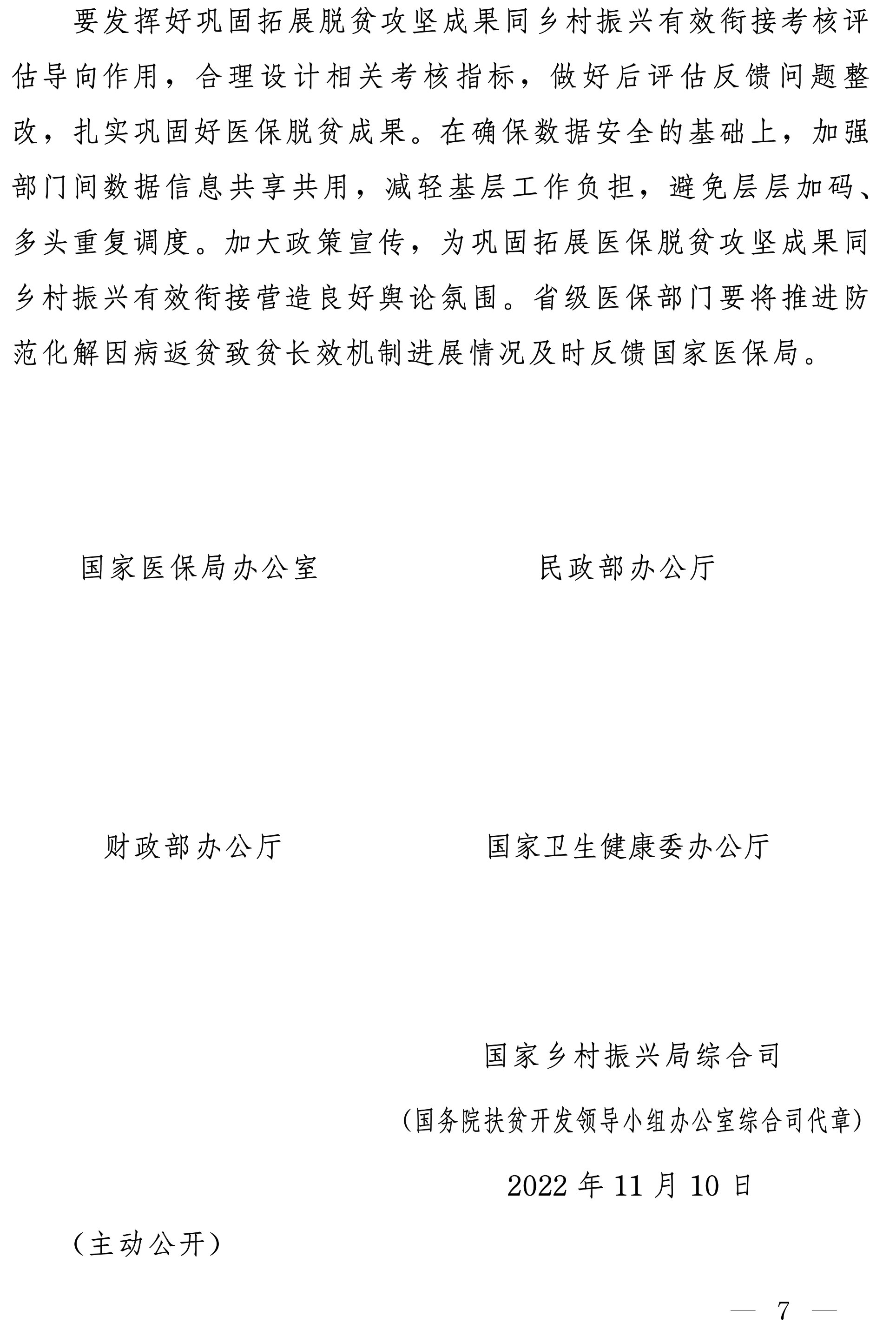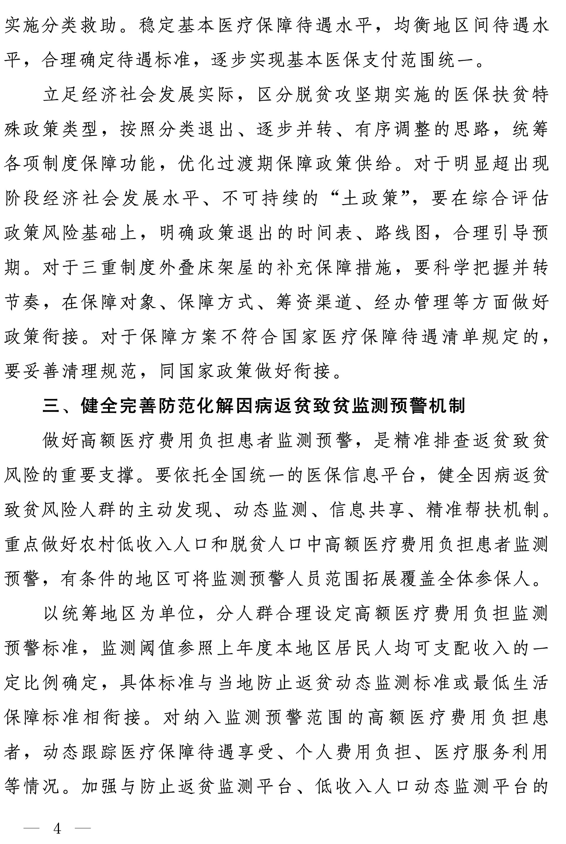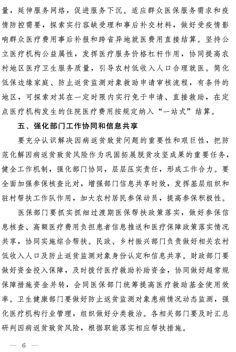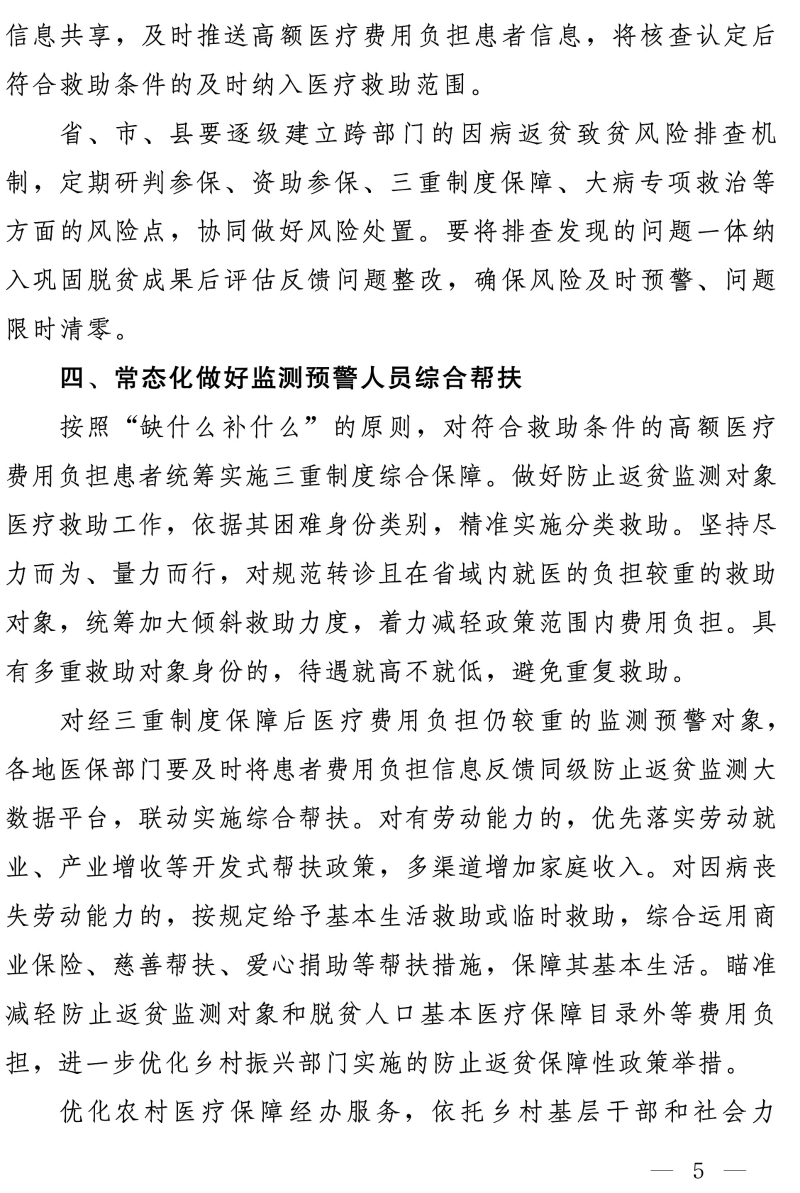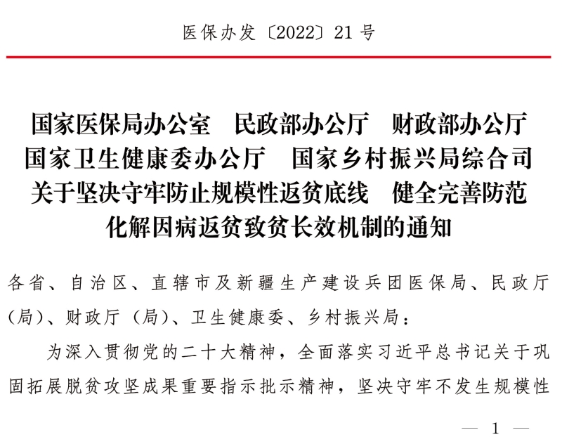 關于堅決守牢防止規模性返貧底線 健全完善防范化解因病返貧致貧長效機制的通知