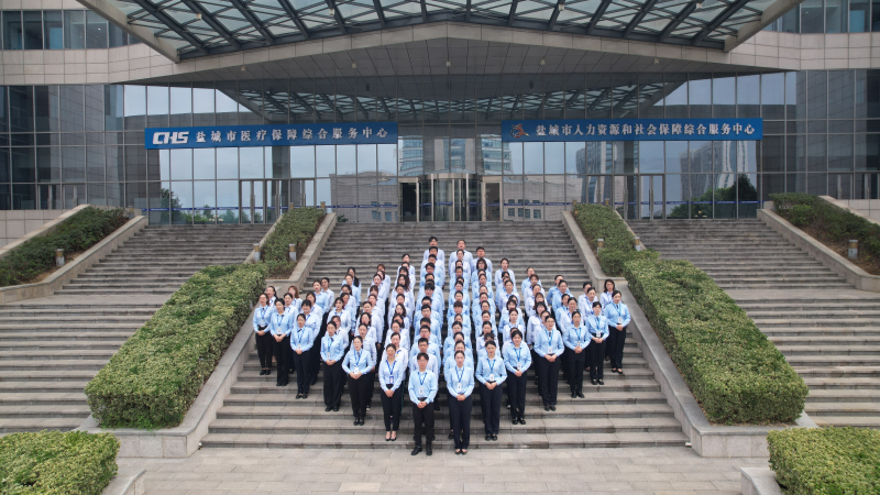 圖為江蘇省鹽城市和鹽城市亭湖區、鹽都區醫保經辦一線窗口人員集體合影。
