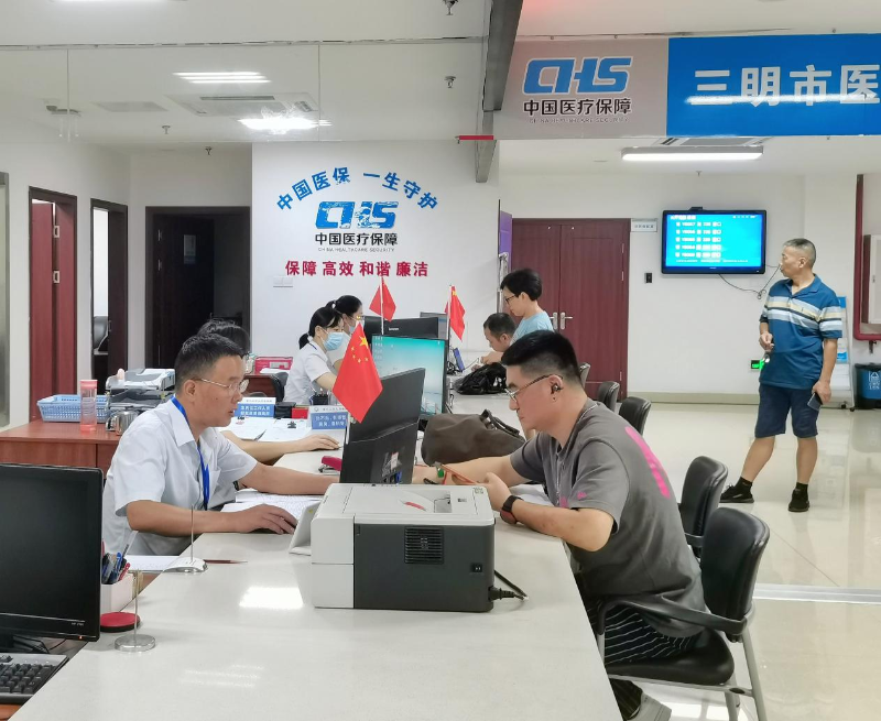 圖為2023年7月10日,福建省三明市醫保工作人員為參保群眾辦理業務。