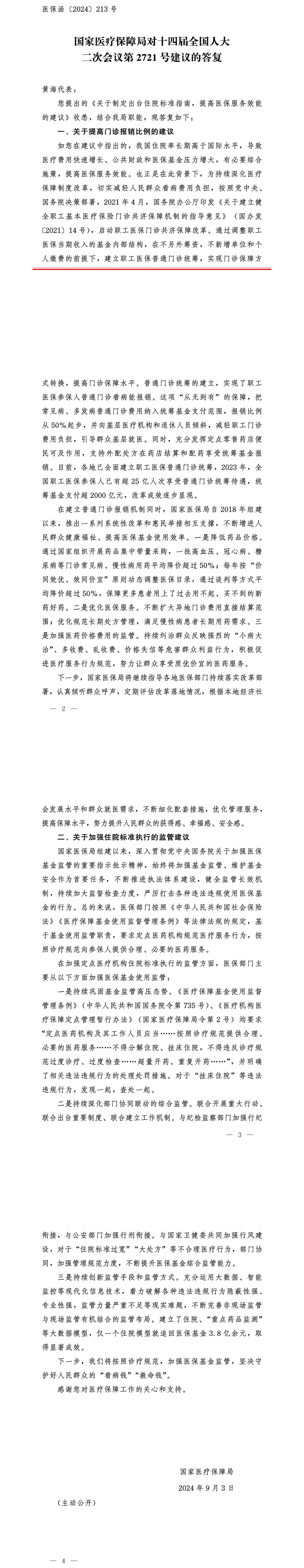 國家醫(yī)療保障局對十四屆全國人大二次會議第2721號建議的答復