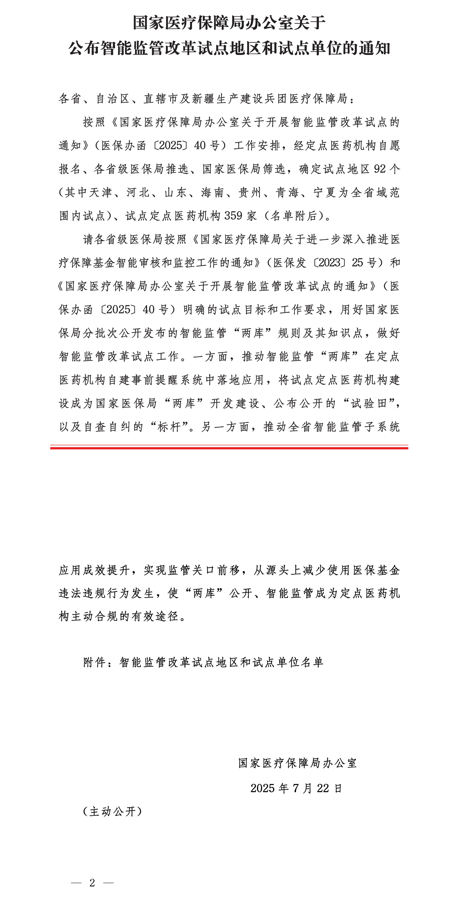 - 名稱: 國家醫療保障局辦公室關于公布智能監管改革試點地區和試點單位的通知